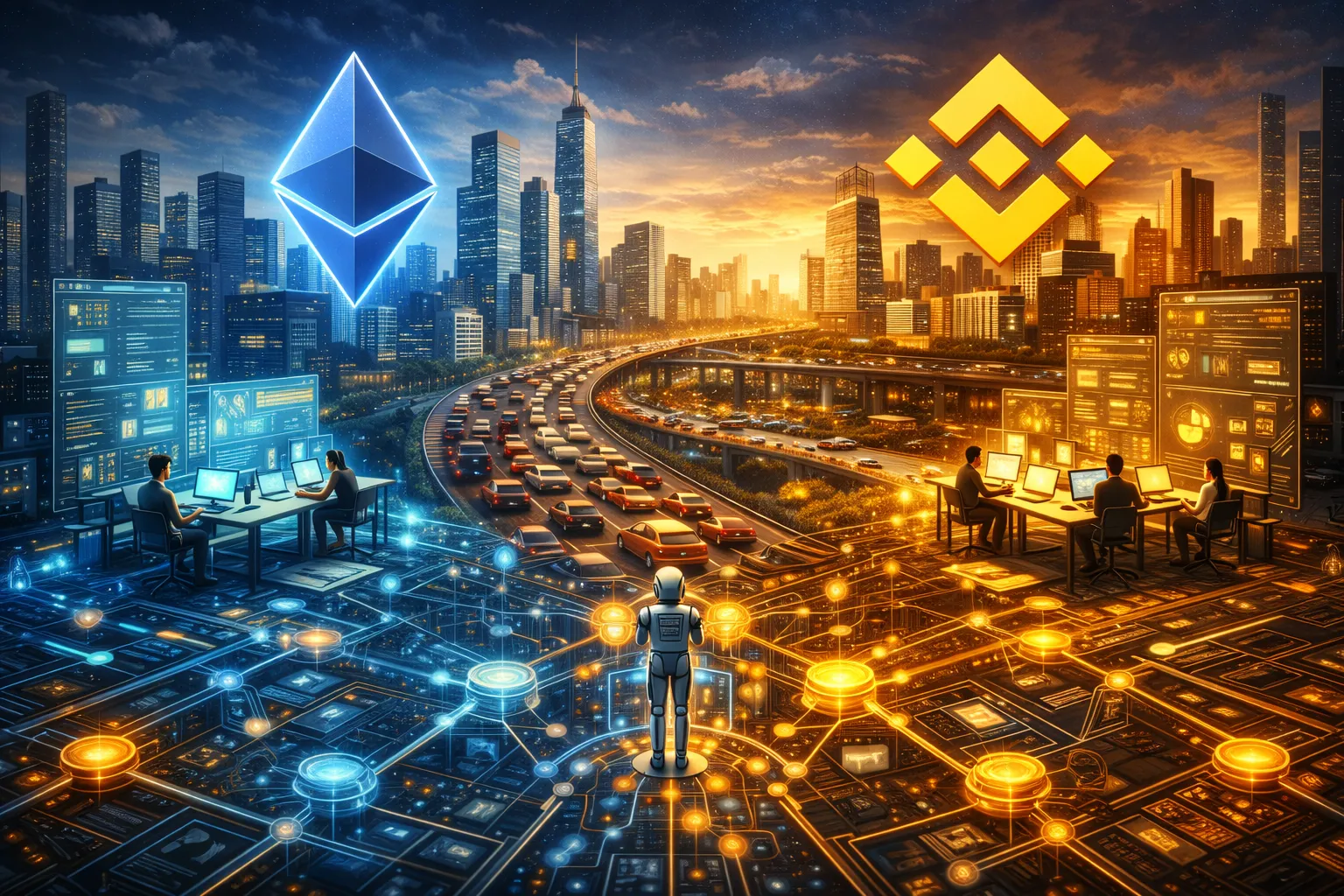 Binance is a master-planned city owned by one developer. It has clean streets, low tolls, faster permits, everything is great as long as you agree with the benevolent dictator. Binance was a solution to Ethereum's congestion problem by a centralized entity. It has an active DeFi ecosystem (nowadays more active than Ethereum), but at the end of the day it's not a true cryptocurrency. It's more of a Ethereum protocol running in single-player. It can run all the apps Ethereum can, but the security/safety just isn't there.