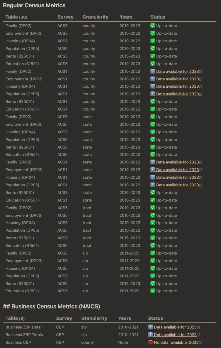 And that's when a realization hit. If I can embed arbitrary code in my notes, why not integrate my scripts directly into my notebook? The initial proof of concept were my Investomation scripts for checking + fetching data once Census publishes it.