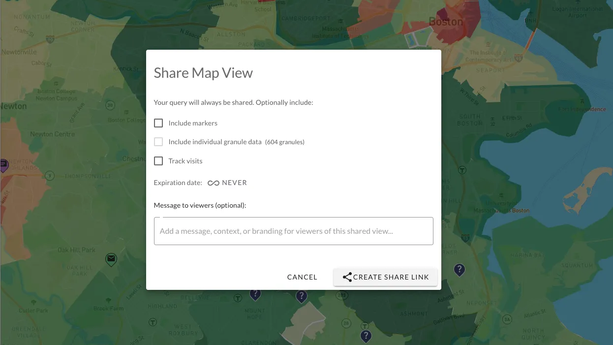 Investomation's shareable view gives you a link instead of a screenshot. The recipient opens it and gets the full interactive experience: the heatmap, the analytics panel, the markers, the ability to click into neighboring regions and see their data. It's a multi-dimensional snapshot. The selected year and metrics stay fixed to exactly what you chose, but the interactivity is fully intact. If the Census later corrects an error in the underlying data, the view reflects that correction, so the research stays accurate even if you never touch it again.
