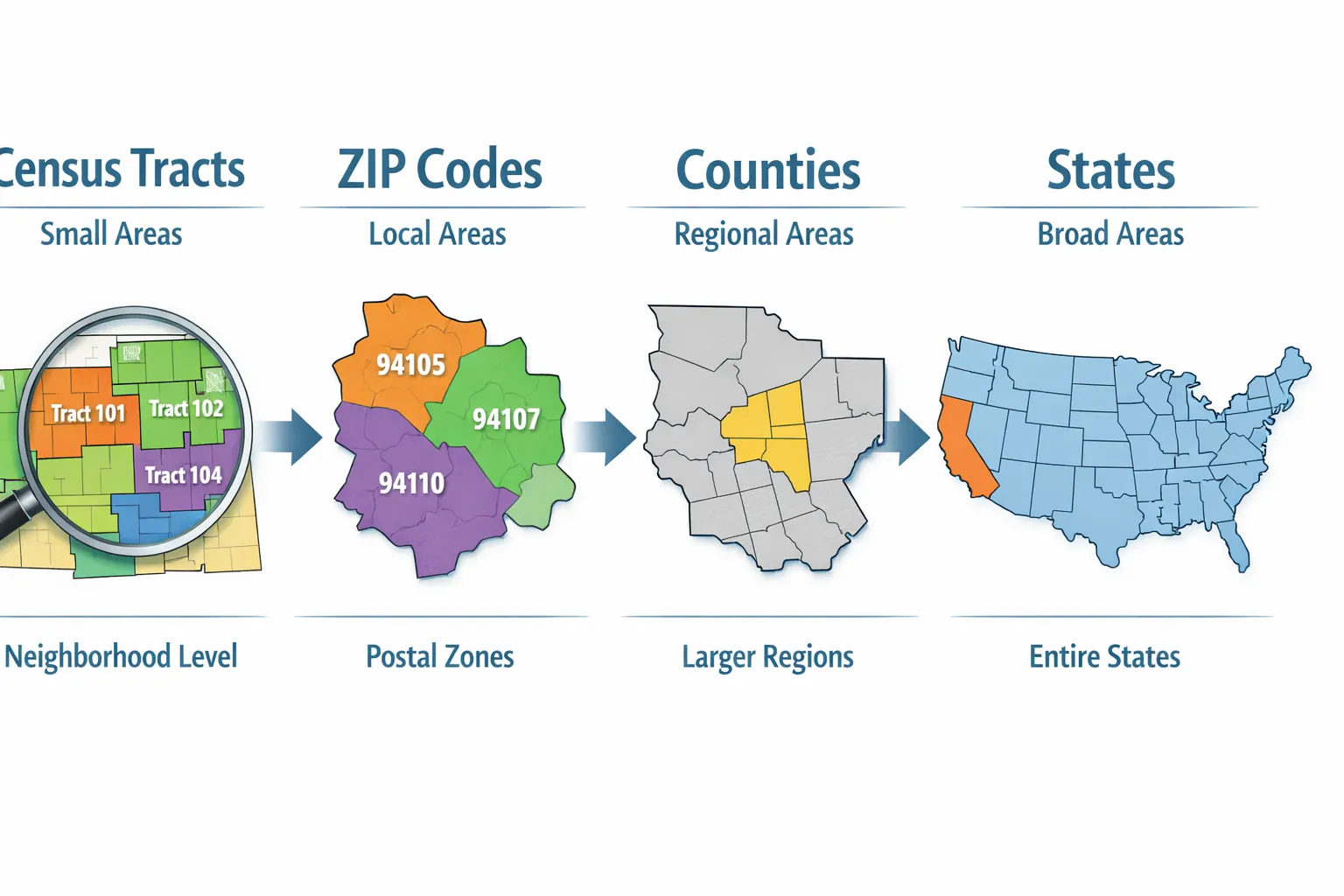 | Census Tracts | ~85,000 | ~4,000 | Demographic deep-dives |