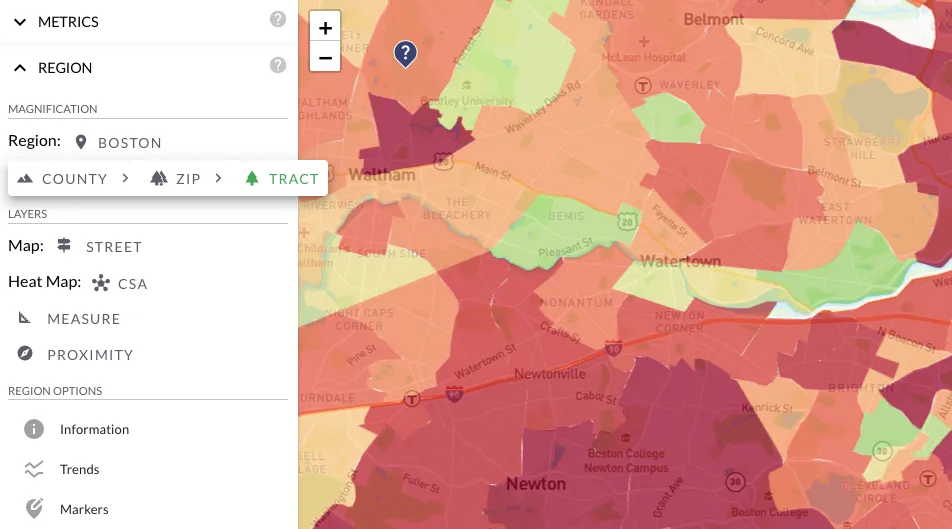 Zip codes are our user-facing layer. When you search for an area, you probably know the zip code. We translate that to the underlying tracts for analysis, then present results in terms you understand.
